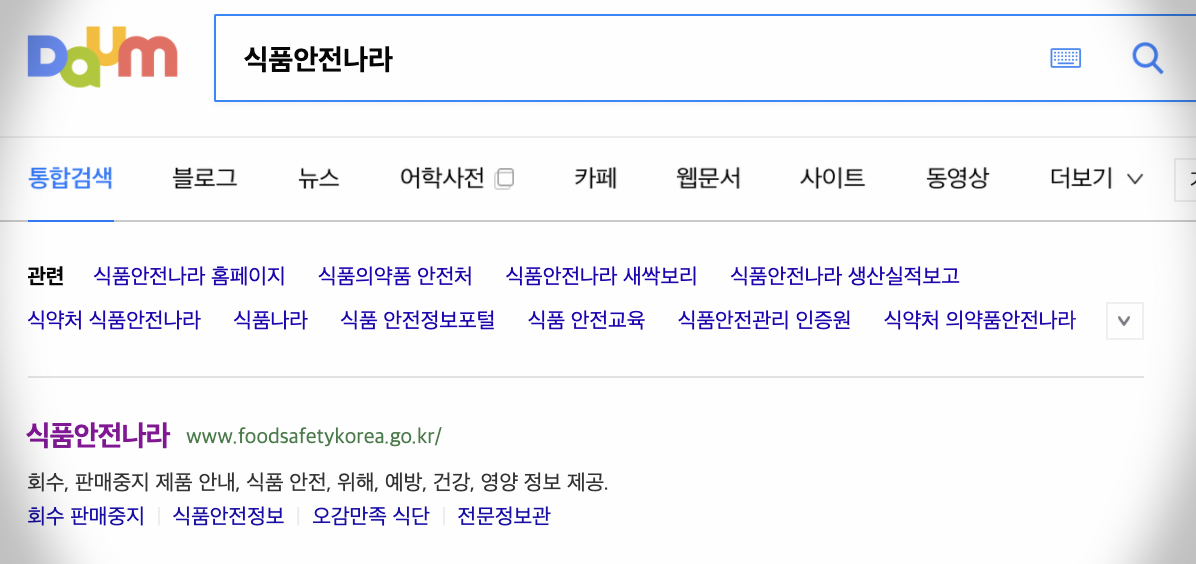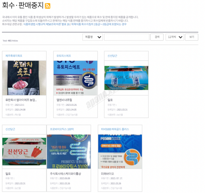 이용하시는 검색사이트에서 식품안전나라를 검색해 보세요. 회수 판매중지 제품안내를 확인 할 수 있고, 식품안전, 위해, 예방, 건강, 영양정보를 제공하고 잇습니다. 그리고 식품안전나라 서포터즈 모집 공고도 있으니 관심있는 분들은 홈페이지를 통해확인하시면 좋습니다.