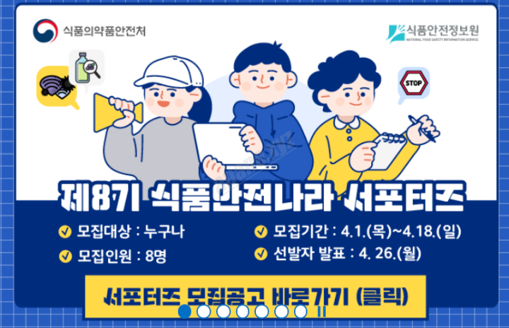 또한 주부 서포터즈를 모집하면서 더 많은 정보를 국민들과 나누려고 하는 식품안전정보원을 뽑고 있습니다. 가족의 먹거리를 책임지는 주부들을 대상으로 정확하고 정직한 눈높이에서 정보를 제공 해 줄수 있는 주부 서포터즈를 모집하는 식품의약품안전처 정말 대단한 곳인것 같습니다.