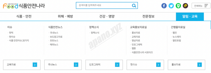 식품/안전, 위해/예방, 건강/영양, 전문정보, 알림/교육